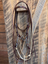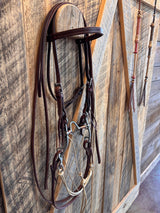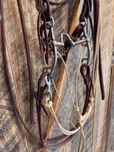 Dennis Moreland rigged us up some of his German martingales that pair perfectly with the Kerry Kelley 50 Shank featuring the Al Dunning mouthpiece. This combination makes a great tool to have in your tack room, helping your horse soften laterally and vertically, understand collection, and learn to give to your hands and legs.