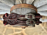 TM Leather Medium/Large Brown Tooled Spur Straps w/ KK Diamond Buckles