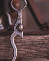 Personalization can be added to any bit! We can mount initials or a brand on the purchase of the bit (the section above the mouthpiece and below the bridle ring). Turnaround time is typically 3–4 weeks.